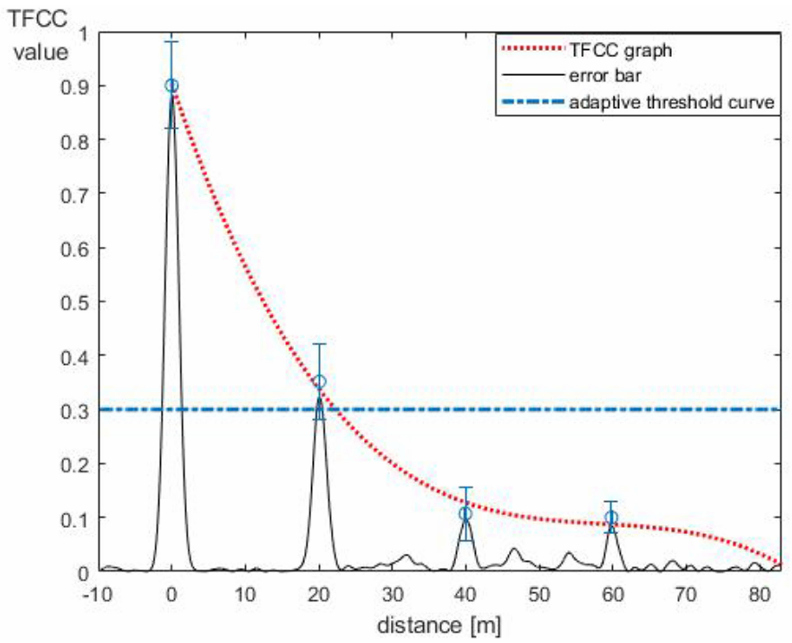 Advanced signal sensing method with adaptive threshold curve based on time frequency domain reflectometry compensating the signal attenuation